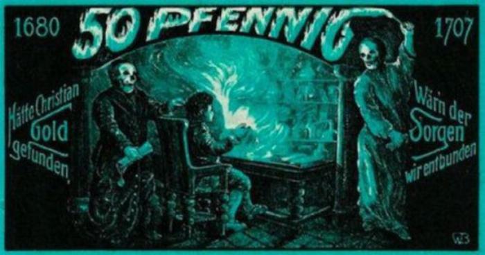 Германия начала испытывать нехватку денег и металлов в 1914 году c началом Первой мировой войны. Взлетели цены на серебро, а медь и никель полностью направлялись на военные нужды. Без монет торговля стала почти невозможной, поэтому городские власти и частные предприятия начали печатать бумажные деньги под названием Notgeld или «аварийные деньги».