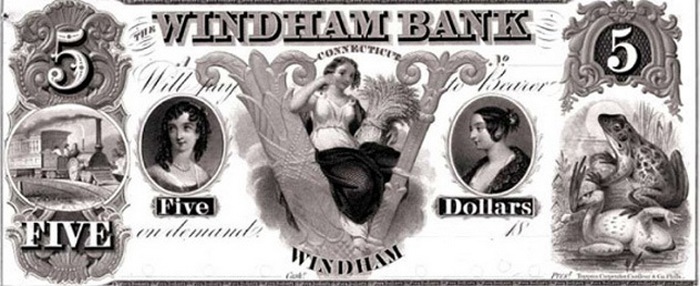 Во время британского колониального периода до Войны за независимость американские банки выпускали свою собственную валюту для местных сообществ. Самые ранние банкноты были просты по конструкции, и их было легко подделать. Затем ввели более сложные купюры. В качестве дополнительной меры борьбы с контрафактом, на банкноты наносили изображения на основе местного фольклора, которые были понятны только членам местного сообщества.