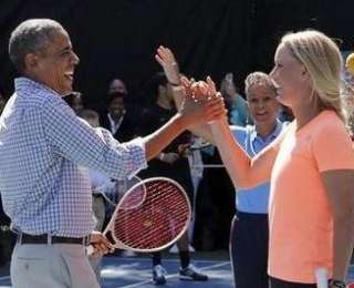 Так в понедельник Обама сыграл в теннис с бывшей первой ракеткой мира датской теннисисткой Каролин Возняцки.