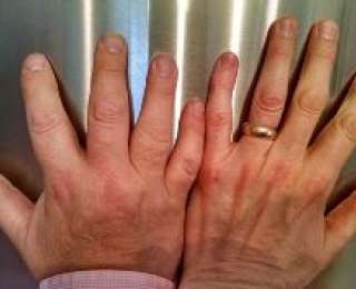 Руки двух братьев, разница в возрасте которых - всего пять лет. Старший из них в молодости взял на себя управление родительской фермой, а младший выбрал карьеру белого воротничка. Сейчас им 51 год и 46 лет соответственно. Думаю, не нужно уточнять, где чья рука.