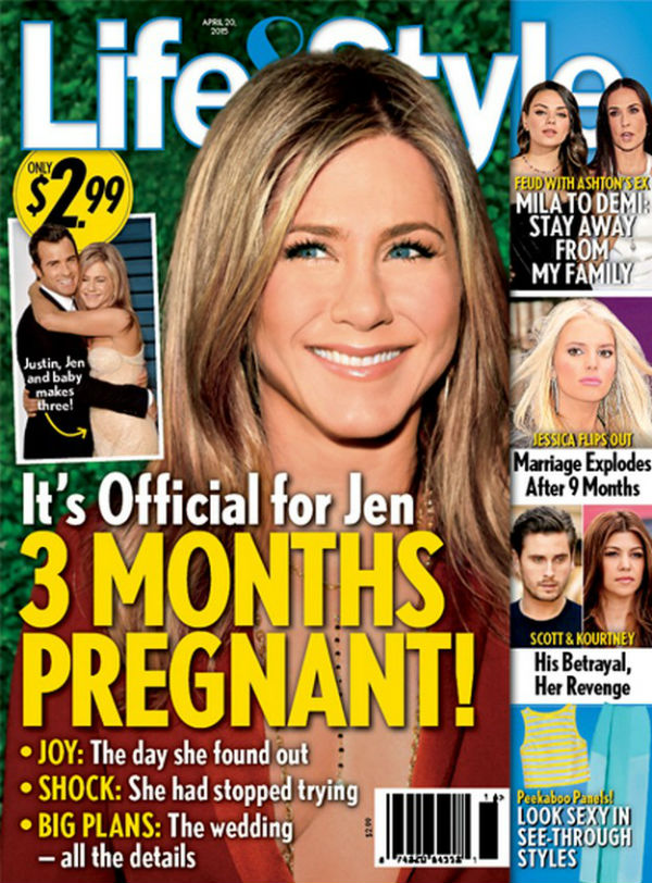 Похоже, что беременность Дженнифер Энистон стала камнем преткновения для западных СМИ. Бедная актриса уже находилась в интересном положении столько раз, что, если бы все это оказывалось правдой, у нее было мы около 900 детей. Больше всего о беременности звезды «Друзей» любит писать журнал Life&Style, при этом каждый раз издание ссылается на серьезные источники. Вот и в новом номере журнал сообщает, что Энистон находится на третьем месяце.
