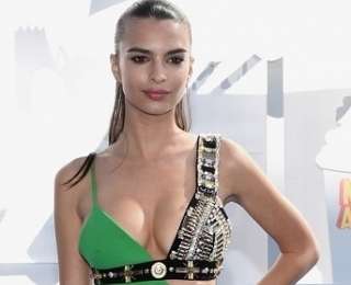 Учитывая размеры груди Эмили - такой минимализм ей был к лицу...и телу. На ножках модели были туфельки от Giuseppe Zanotti и клатч Amanda Pearl.