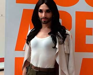 Поэтому вчера, когда на Лондонской книжной выставке я встретил горячо любимого российской публикой персонажа по имени Кончита Вурст, я не стал просить вездесущих китайцев об одолжении, а сфотографировал его (ее) сам.