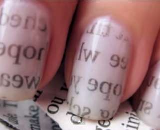Кажется, не существует уже того, что не опробовали женщины в своей вечной погоне за красотой и оригинальностью. Для улучшения внешнего вида, придания коже чистоты, а волосам — блеска в ход идут самые разнообразные жидкости и материалы. Так, например, снявшая этот ролик девушка придумала, как использовать самую обычную газету для получения в высшей степени необычного маникюра. Чтобы полюбоваться эдаким дивом на собственных ногтях, тебе понадобится светлый лак, закрепитель, немного спирта и, собственно, сама газета. В общем, смотри сама!