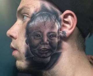 20-ти летний Кристиан из Техаса сделал себе татуировку с изображением своего сына на левой стороне лица. Фотографии с новым имиджем он выложил у себя на на странице в социальной сети, добавив к описанию, что получилось "Круто!"
