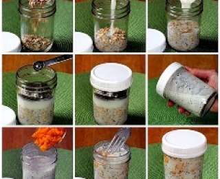 Особенно удобно, что банки с овсянкой можно замораживать, если наполнить только на 3/4, чтобы не лопнули от расширения жидкости при замерзании. И желательно не забывать их в морозилке больше чем на месяц. Когда понадобится новая порция, просто с вечера переставьте банку из морозилки в холодильник. Если утром захотелось горячей каши, можно разогреть банку в микроволновке.
