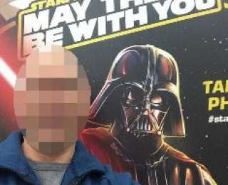 На самом еже деле мужчина просто делал селфи рядом с Дартом Вейдером, и это фото тому подтверждение