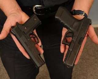 Пистолет слева - фальшивка, а справа - настоящий. Согласитесь, не так просто разобраться.