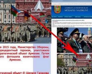 В Азербайджане армянофобия достигает уже маразма. Сайт Минобороны Азербайджана с помощью Фотошопа стер армянский флаг в материале о параде 9 мая на Красной площади. "Великая победа")))))