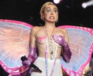 К счастью, грудь Майли прикрыла наклейками в форме бабочек. А также дополнила образ крыльями этого насекомого и розовыми длинными перчатками. Неужели певица выбрала этот наряд по доброй воле?