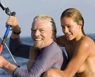Британский миллиардер Ричард Брэнсон недавно стал самым пожилым человеком, пересекшим Ла-Манш на кайт-серфинге. Правда перед этим он долго тренировался управляться с кайтом. На одну из своих тренировок он пригласил модель Дэнни Паркинсон, чтобы покататься вместе