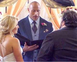 «Я, Дуэйн Скала Джонсон, с властью, данной мне, объявляю вас мужем и женой», — произнес знаменитый голливудский актер на свадьбе своего преданного поклонника. О том, что на торжество заглянет звезда такого масштаба, молодожены не могли представить даже во сне. Подготовка к мероприятию шла полным ходом, и вечером влюбленные встретили своих гостей. Неожиданно в дверях зала появился гость, при виде которого и молодожены, и их близкие раскрыли рты от изумления. Как оказалось, жених Ник Рок, преданный фанат Джонсона, в шутку пригласил актера на свою свадьбу, написав ему комментарий в социальной сети. Дуэйн на сообщение не ответил, однако отнесся к приглашению со всей серьезностью. На свадьбе Скала появился в шикарном смокинге и с бутоньеркой в кармане пиджака. Пока присутствующие в зале приходили в себя, актер взял инициативу в свои руки и решил сам провести свадебную церемонию, поженив парочку.