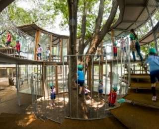 Здание строилось вокруг растущих деревьев, и, чтобы обезопасить детей от падения, проектировщикам пришлось натянуть там специальные гамаки. У детей это место стало одной из любимейших игровых зон.