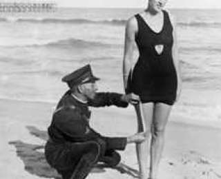 1921 год. Чикагская полицейская проверяет не нарушен ли закон, регламентирующий ношение купальных костюмов.