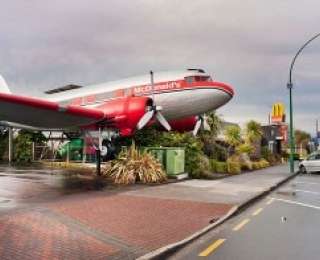 Этот McDonald’s в Таупо, Новая Зеландия, расположен внутри списанного самолета DC-3. «Биг Мак, большую колу и билет до Рио, пожалуйста!» (ALAMY)