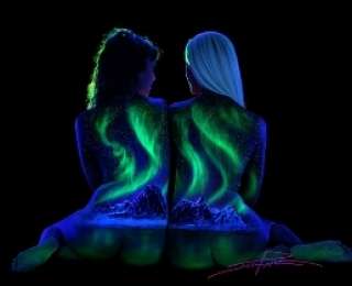 Фотограф и художник Джон Попплтон создает фантастические произведения искусства, в которых сочетает красоту женских форм с великолепием природы. На спинах обнаженных девушек он рисует люминесцентными красками пейзажи, будто то закаты, рассветы, океаны, горные хребты, мерцающие сияния и даже космос. Все это выглядит мистически и завораживающе.