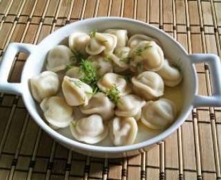 А это – пельмени, какими их знаем мы, популярное русское блюдо. Название “пельмень” произошло от фино-угорского «пельнянь» («хлебное ухо»: пель «ухо» + нянь «хлеб»). У нас популярными начинками являются свинина, говядина, курятина, грибы или сыр.