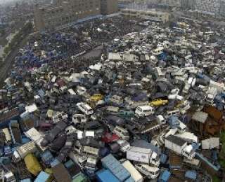 Старые автомобили свалили на стоянке, используемой в качестве свалки металлолома в Ханчжоу. Такие свалки породили целое направление бизнеса: разборки автомобилей. На таких свалках можно заказать различные детали, запчасти, шины, колеса, радары-детекторы, блоки управления, видеорегистраторы и мн. др.