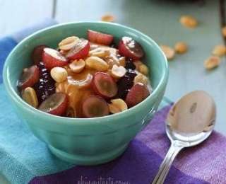 Любимый джем, виноград, арахисовая паста, жареный арахис и овсяные хлопья