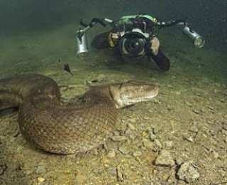 Швейцарский дайвер Франко Банфи (Franco Banfi) отправился в бразильский регион Мато Грассо, чтобы специально заснять в природе знаменитую анаконду, самую большую змею в мире.