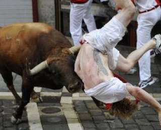 30-летний британец, приехавший на традиционные бега с быками в испанской Памплоне в поисках острых ощущений, довольно быстро наигрался и был отправлен в больницу с травмами. Полутонный бык изрядно повредил ему область таза. Некоторым другим участникам тоже досталось.
