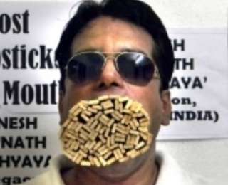 Учителя из индийского города Мумбаи Динеша Упадхийя в народе прозвали «Макси-рот» - он прославился тем, что может засунуть себе в рот огромное количество разнообразных предметов. В его активе рекорды с карандашами (92 штуки), виноградинами (79), свечами (12) и мячиками для гольфа (5). На этот раз он умудрился набить себе рот 1001 палочкой для еды.