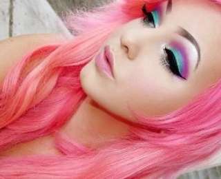 Этот яркий макияж отлично сочетается со смелым цветом волос девушки