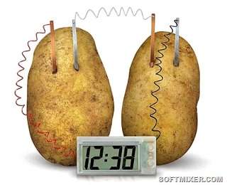 Ученые обнаружили, что если проварить картофель всего восемь минут, а затем разрезать на части, он станет эффективным «солевым мостиком», через который можно направить поток электронов. Комплект для изготовления самодельной батареи из картошки включает знакомые вам элементы: два «крокодила» и два электрода. Все это займет не много места, легко заменить и недорого купить. Осталось только наварить картошки.