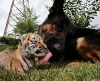У тигренка, от которого в двухнедельном возрасте отказалась мама, теперь несколько приемных родителей — люди и собаки! Детеныш родился в зоопарке в Словакии, и неопытная мать, испытавшая ужас от процесса родов, не приняла его. Теперь тигренка воспитывают сотрудники зоопарка Ивета и Миска и три собаки — Блэки, Дженни и Хьюго. Всё свободное время маленькая тигрица проводит за едой, сном и играми, а собаки присматривают за ней — и заодно облизывают!
