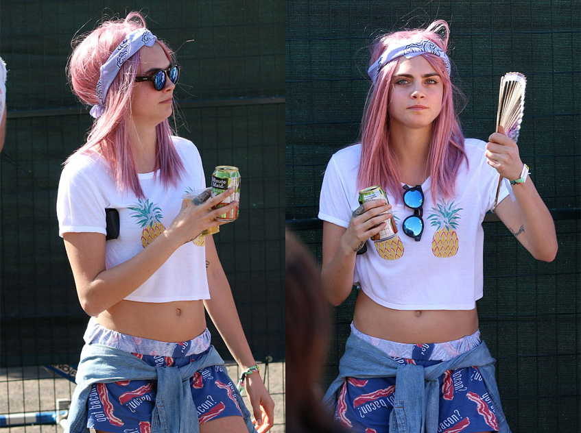 Звезда приехала на самый большой фестиваль Канады поддержать свою возлюбленнуюЭнни Кларк (32), известную под псевдонимом St. Vincent, в очень неожиданном образе. Она появилась на мероприятии в короткой майке с изображением ананасов, мужских шортах и бандане, которая украшала ее розовые волосы.