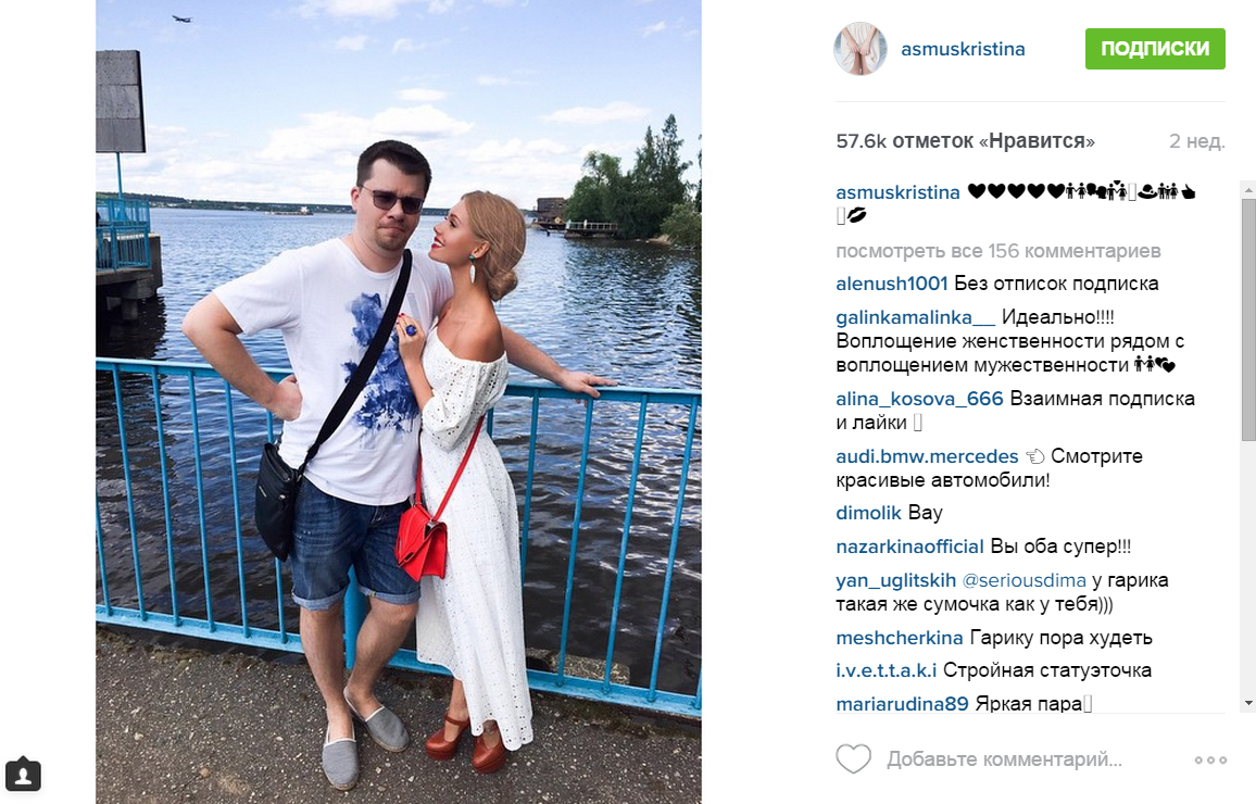 6 августа резидент Comedy Club опубликовал фотографию, на которой запечатлены Кристина и маленькая Настя, которая нежно целует маму. Как оказалось, фото появилось в Instagram актера не случайно. Таким образом он решил поздравить дочку с праздником. «Поцелуй моего сердца. @asmuskristina и наша доченька Настя. Ей сегодня годик и семь месяцев. Когда Настя вырастет и зарегистрируется в "Инста", возможно она наткнется на этот пост и прочитает, как родители её поздравляют. Настя, мы тебя очень любим. Ты наше счастье. Твои папа и мама. И заодно, здоровья и радости всем детишкам на земле», - написал Гарик.