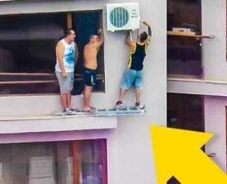 Для разнообразия можно взять с собой на стремянку что-нибудь тяжелое.