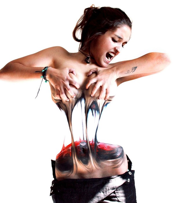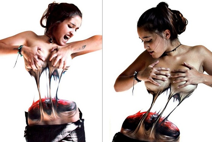 Талантливый художник из Сантьяго (Чили) удивляет интернет-пользователей своим удивительно реалистичным бодиартом. Созданные им модели будто «разрывают» себя в порыве агонии на части. Такое жутковатое зрелище вызывает неоднозначные эмоции у зрителей.