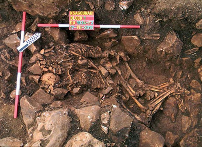 Необычное захоронение – лежащие на боку в обнимку мужчина и женщина - было вскрыто ещё два года назад, но изучение его, которое предполагало и радиоуглеродное датирование, было закончено лишь недавно. Археолог Георгос Папатанассопулос, который ведёт раскопки в пещере Алепотрипа с 1970 года, рассказал, что смерть настигла этих людей около 6 000 лет назад. Умерли они молодыми: мужчине 25 лет, а женщине – 20. Но при этом эти покойники – самые древние их обнаруженных на территории Греции.