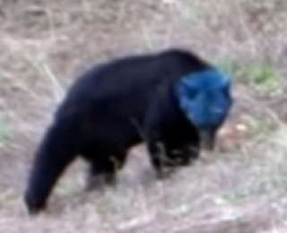Видеозапись с медведицей, голова которой окрашена в ярко-синий цвет, стала хитом на YouTube после того, как фотограф Аарон Смит заснял зверя в окрестностях города Мишн (Британская Колумбия, Канада) и выложил соответствующий ролик в интернет.
