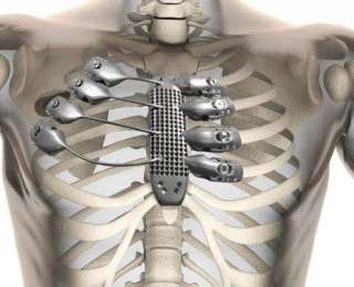 При этом первая в мире пересадка этого титанового грудного протеза успешно прошла в Испании. Обладателем новых рёбер из титана стал 54-летний мужчина, страдавший от саркомы грудной стенки. Из-за множества удалённых костей протезирование классическими методами уже не представлялось возможным.