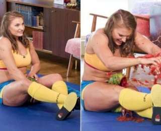 30-летняя спортсменка и рекордсменка из Украины Ольга Лящук была приглашена в утреннее британское телешоу This Morning, где она буквально взорвала мозг англичан, показав сокрушительную мощь своих бёдер. В прямом эфире шоу Ольге удалось раздавить 3 арбуза всего за 14 секунд, несмотря на то, что третий "сопротивлялся" как мог. Ольга Лящук является рекордсменкой книги Гиннеса за самое быстрое крушение фруктов своими бедрами, для демонстрации чего она собственно и была приглашена в студию.