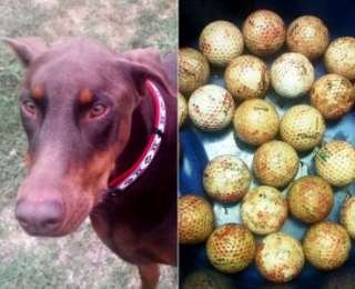 1 место - доберман Зевс, съевший 26 мячей для гольфа