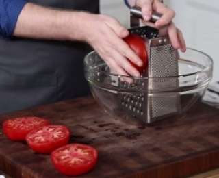 Натри на терке помидор, добавь остальные ингредиенты и смешай с приготовленными спагетти. Приятного аппетита!
