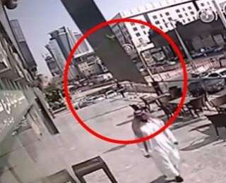 В Сети появилось видео, на котором большое оконное стекло падает с высоты на голову мужчине, неспешно прогуливающемуся по улице. Житель Саудовской Аравии не только остался в живых после инцидента, но и самостоятельно смог встать и поднять с земли упавшую арафатку.