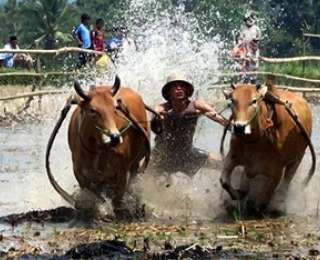 Бег быков Пачу Джави (Pacu Jawi) – традиция народа Минангкабау западной Суматры, исторически приуроченная к окончанию сбора урожая. Изначальная цель фестиваля – дать возможность крестьянам похвастаться способностями своих быков – бывало, их прямо после забегов продавали, и цена зависела от качества выступления. А в чём собственно заключается это выступление?..