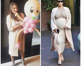 Несмотря на интересное положение, 30-летняя Виктория Крутая не отказывается от стильных нарядов. Поклонница соблазнительных мини, ожидая первенца, сменила короткие юбки и джинсы-скинни на удобные трикотажные платья и длинные накидки... вдохновившись образами беременной Ким Кардашьян?