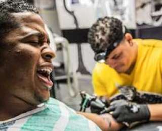 Фотограф Энн Бэлок Лавэр (Anne Burlock Lawver) подчеркивает как боль, так и безмятежность процесса нанесения татуировки в своей серии «Indelible» («Несмываемое»), которая состоит из снимков, сделанных на протяжении года в нью-йоркском тату-салоне Gunmental Tattoos.