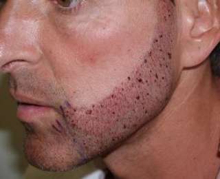 Густые волосы с затылочной части головы точечно пересаживают на лицо. Благодаря такому новейшему методу трансплантации волос пациент может стать обладателем достойной бороды и выглядеть как только что переехавший в город лесоруб.