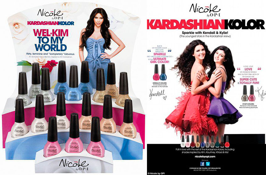Линейка лаков марки O.P.I также пользовалась большой популярностью, ведь их лицом стала не только Ким, но и Кайли и Кендалл Дженнер.