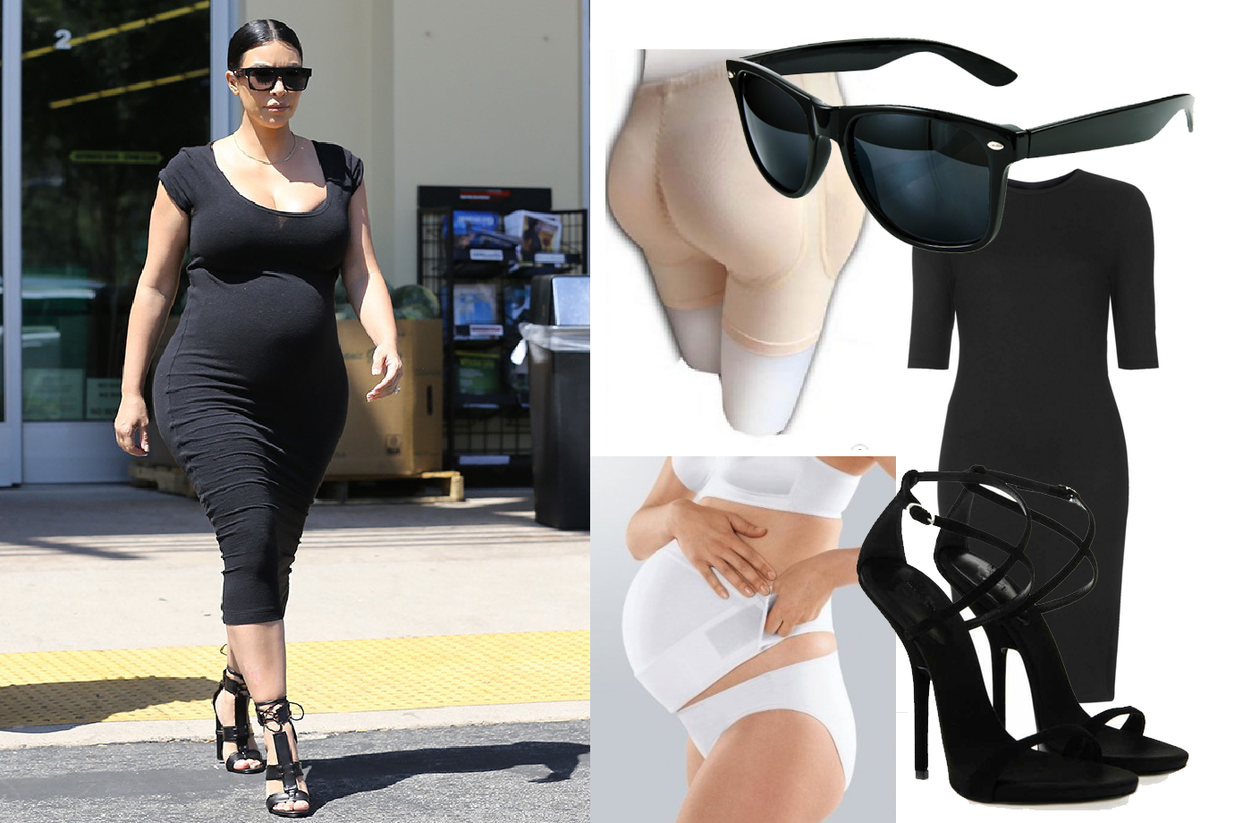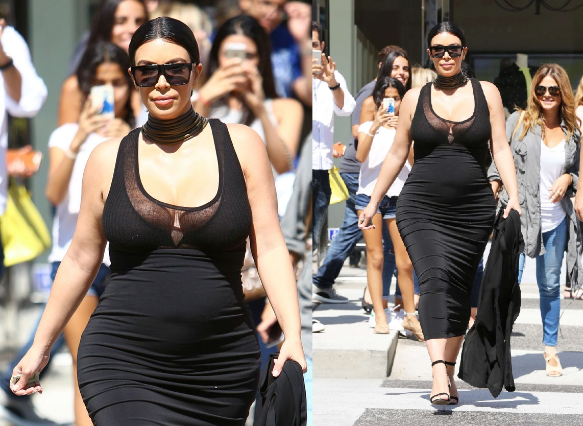 И в завершение не забудь надеть черные солнечные очки и каблуки, ведь даже во время беременности Ким не изменяла своему стилю!
