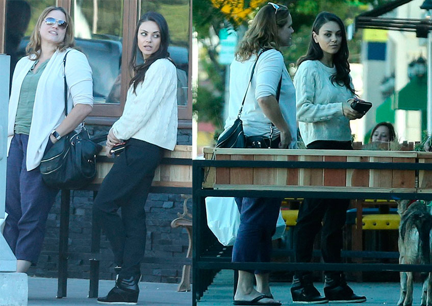 Мила встретилась со своими подругами в прошедший четверг, и пообедала в их веселой компании. Кунис светилась счастьем и ее лицо редко покидала улыбка.