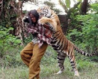 Когда животное становится чрезмерно агрессивным, на помощь к Шалле приходит его знакомый, который отгоняет разыгравшегося бенгальского тигра.