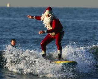 В Австралии Санта Клаус появляется на доске для сёрфинга