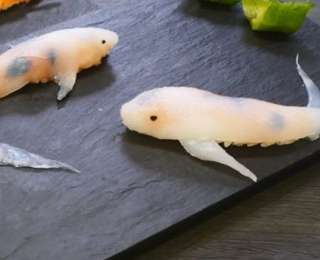 Магазин и ресторан суши Nishikizushi, расположенный в городе Сайки, Япония, придумал подавать суши в необычной форме, а именно в виде плавающих карпов кои. Они называются "Nishikigoi no Sugatazushi", что буквально переводится как красочные кои-образные суши.